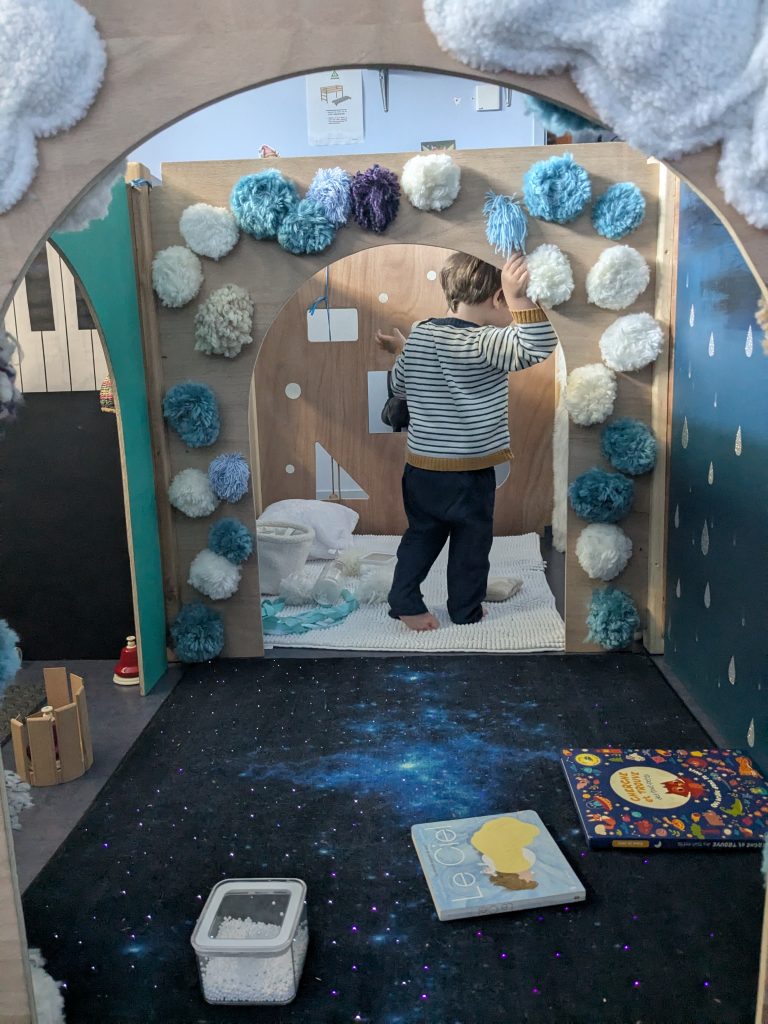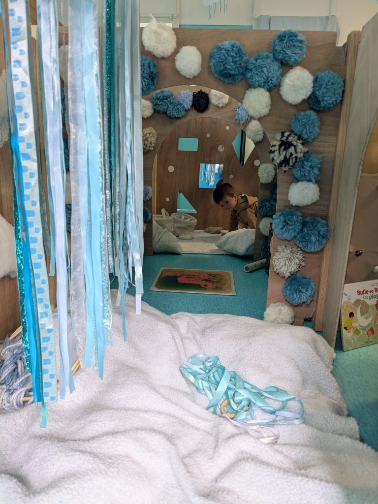 Ce dispositif est déployé sous formes d’espaces modulables à thème qui s’appuie sur des albums de la littérature jeunesse.